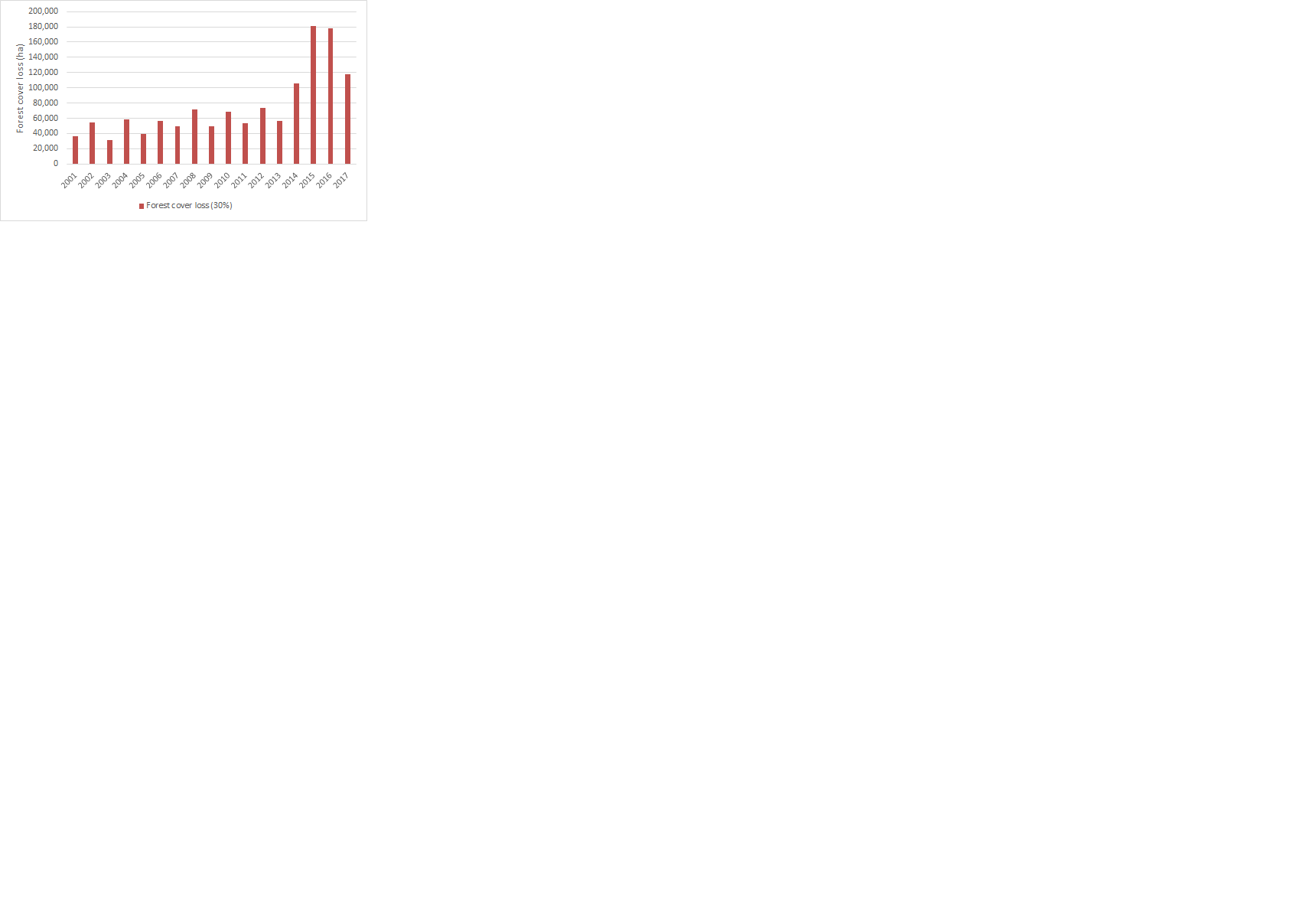 PNG forest cover loss at 30% tree cover sourced from www.globalforestwatch.org